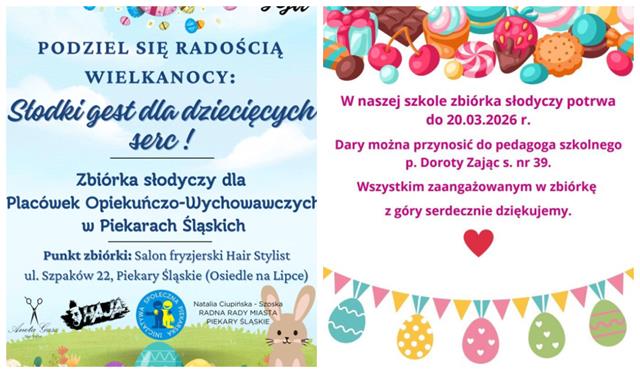 Serdecznie zachęcamy do zaangażowania się w zbiórkę: Słodki gest dla dziecięcych serc! Informacje na plakatach. Z góry wszystkim dziękujemy za okazane serce