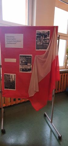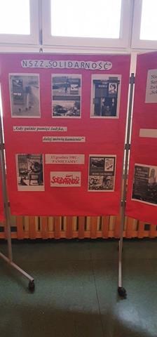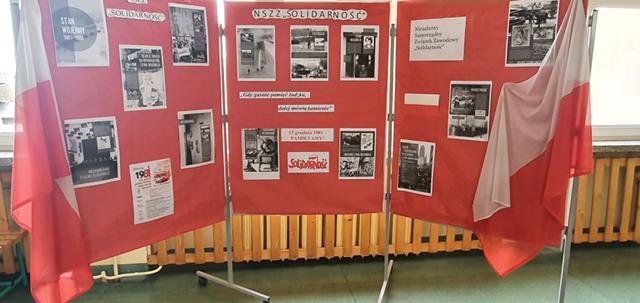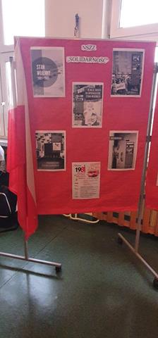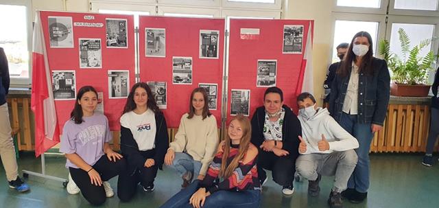 W ramach realizowanego przez naszą szkołę projektu "Gdy gaśnie pamięć ludzka, dalej mówią kamienie. 13 grudnia1981- PAMIĘTAMY!” powstał szkolny kącik historyczno- patriotyczny. Uczniowie z klasy 8b wraz z nauczycielem historii przygotowali wystawę poświęconą upamiętnieniu wprowadzenia 40 rocznicy stanu wojennego. Wystawa przedstawia najważniejsze fakty i wydarzenia związane ze stanem wojennym. Można obejrzeć kopie zdjęć i dokumentów, które przedstawiają minione wydarzenia. Ponadto uczniowie mają możliwość zapoznania się z najważniejszymi faktami związanymi z pacyfikacją kopalni „Wujek".