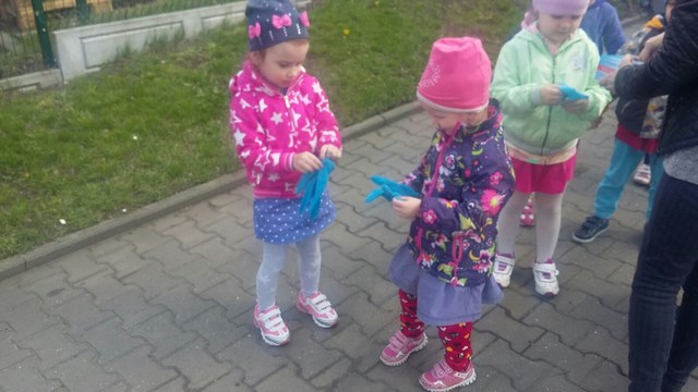 Tydzień od 18 do 22 kwietnia upłynął w naszym przedszkolu pod hasłem ekologia. A wszystko to z okazji obchodów Dnia Ziemi (22 kwietnia). Prowadzone były w tym czasie zajęcia mające na celu wzbogacić wiedzę dzieci na temat ekologii, a w szczególności wyegzekwowanie zachowań związanych z możliwościami ochrony naszej planety. Wykonaliśmy pracę plastyczną z nieużytków - recykling, zadbaliśmy o porządek wokół naszego przedszkola - wyruszyliśmy z workami na śmieci oraz rękawiczkami sprzątać podwórko (na szczęście znaleźliśmy tylko niepotrzebne patyki, połamane gałązki ). Kiedy otoczenie zostało wysprzątane mogliśmy zasadzić cebulki kwiatowe, aby cieszyły nas swoim pięknem. Na zakończenie cyklu działań otrzymaliśmy "różowe okulary" z napisem " Mały Strażnik Przyrody". Spoglądając przez te okulary świat wydaje się piękniejszy!