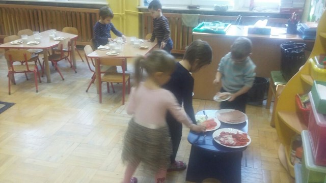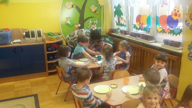 23 marca uczestniczyliśmy w Poranku Wielkanocnym, który przygotowała dla nas grupa Misie. Przed rozpoczęciem wspólnego śniadania złożyliśmy sobie ciepłe życzenia. Ten dzień miał wyjątkowy charakter: dzieci z grupy Misiów zaprezentowały program artystyczny związany z tradycjami wielkanocnymi, śpiewały piosenki i recytowały wierszyki. Następnie zasiedliśmy do wspólnego stołu, jak jedna wielka rodzina. Stoły dzięki hojności rodziców były bogato zestawione.