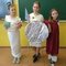 Tym razem w świat bogów i herosów greckich przeniosła nas klasa 5a. Młodzież podobnie jak wcześniej klasa 5b poważnie potraktowała wyznaczone im zadania do wykonania. W czasie trwania lekcji uczniowie zaprezentowali sceny z mitologii greckiej. Posłużyły im do tego przygotowane przez nich atrybuty i stroje poszczególnych bóstw. W czasie odtwarzania własnych ról ukazali sceny z życia wybranych bogów. Z kręgu panteonu bóstw można było zobaczyć Zeusa, Herę, Posejdona, Hefajstosa, Aresa, Atenę, Afrodytę. Ciekawym elementem występów było zaprezentowanie mitu o Europie.