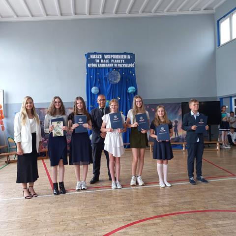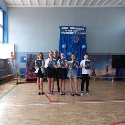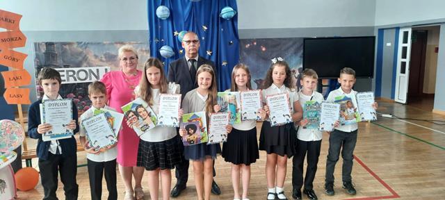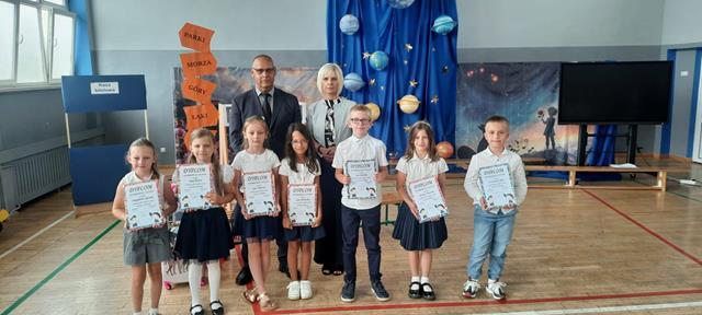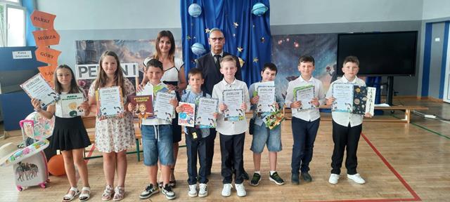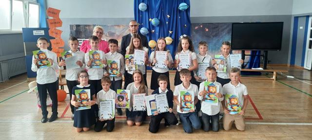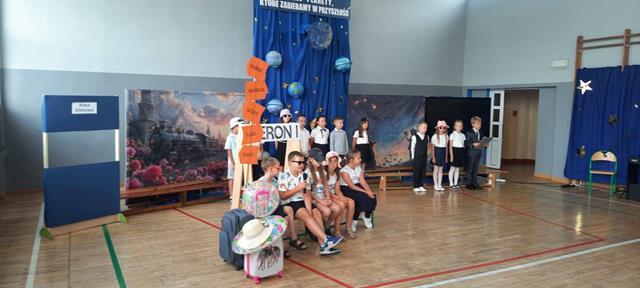 Po 10 miesiącach wytężonej pracy nadszedł dla wszystkich upragniony dzień kończący kolejny rok nauki w naszej szkole. Z tej okazji w klasach młodszych uczniowie klas drugich, a w klasach starszych uczniowie klas czwartych wraz z opiekunami przygotowali uroczystą akademię. W jednej chwili sala zamieniła się w stację kolejową na której młodzi pasażerowie oczekiwali na swój pociąg który zabrał ich w wakacyjną podróż. Czekając w kolejce po swój bilet dzieci opowiadały o swoich wyjazdach wakacyjnych związanych z udziałem m.in.: w różnych konkursach artystycznych. Widzowie mieli okazję posłuchać gry na ukulele i akordeonie oraz podziwiali występy taneczne młodych artystów. Na zakończenie uroczystej akademii Pan Dyrektor nagrodził uczniów, którzy osiągnęli najlepsze wyniki w nauce, a wszystkim zgromadzonym uczniom, nauczycielom i rodzicom życzył udanych i bezpiecznych wakacji.