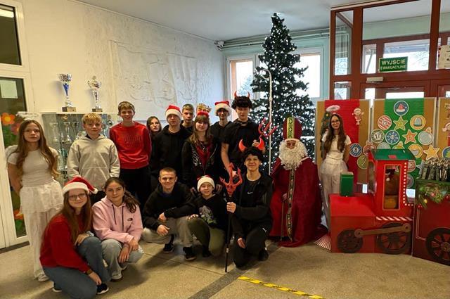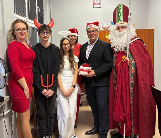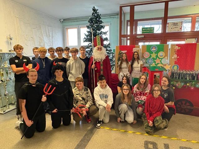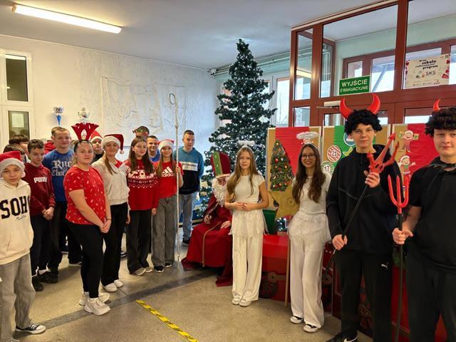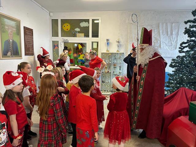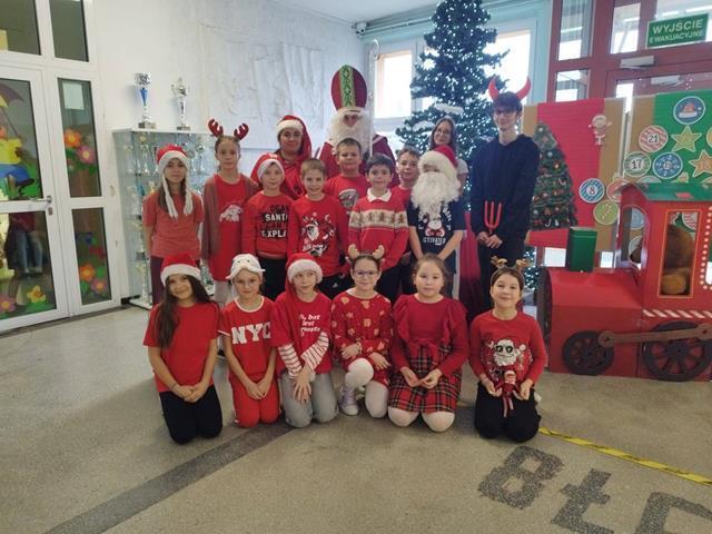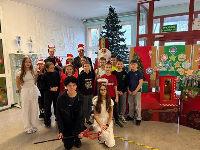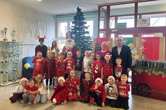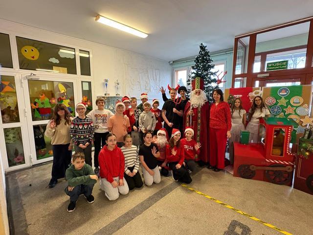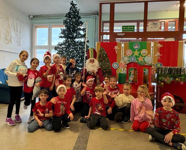 Byliście grzeczni ? Bo My tak!!! Wczoraj uczniowie klas I-IV uczestniczyli w przedstawieniu teatralnym pt.: "Mikołajowa heca" - wystawionym przez Studio Artystyczne Ochy i Achy - podczas którego świetnie się bawili. A dzisiaj Święty Mikołaj miał bardzo dużo pracy, ale nie zapomniał o wszystkich uczniach naszej szkoły. Przywędrował do nas wraz ze swoimi pomocnikami obdarowując dzieci upominkami, uśmiechem i radością. Podczas tego wydarzenia, dzieci miały także możliwość zrobić pamiątkowe zdjęcia z Mikołajem, które będą świetną pamiątką na długie lata. Spotkanie z Mikołajem było dla dzieci wyjątkowym przeżyciem. To był wspaniały dzień, który na długo pozostanie w pamięci uczniów. Dziękujemy Radzie Rodziców oraz opiekunom Samorządu Uczniowskiego - Pani Iwonie Burzyk oraz Pani Izabeli Nowak-Mączko.