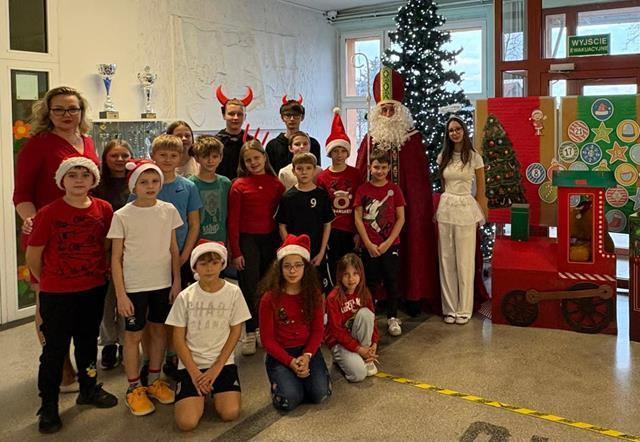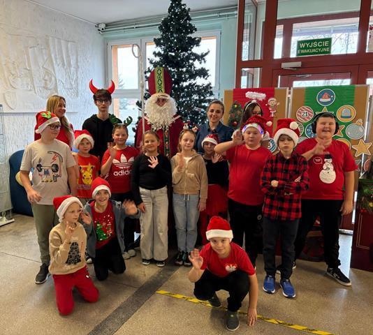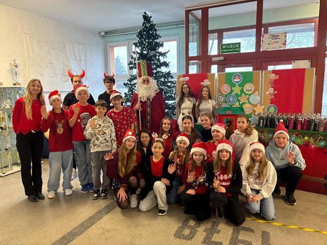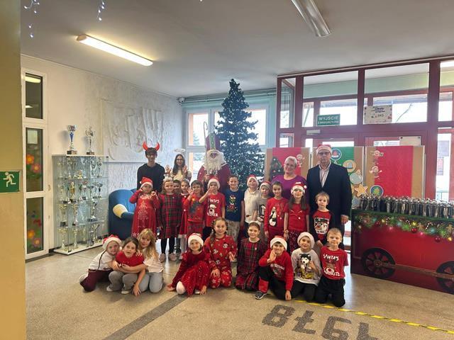 Byliście grzeczni ? Bo My tak!!! Wczoraj uczniowie klas I-IV uczestniczyli w przedstawieniu teatralnym pt.: "Mikołajowa heca" - wystawionym przez Studio Artystyczne Ochy i Achy - podczas którego świetnie się bawili. A dzisiaj Święty Mikołaj miał bardzo dużo pracy, ale nie zapomniał o wszystkich uczniach naszej szkoły. Przywędrował do nas wraz ze swoimi pomocnikami obdarowując dzieci upominkami, uśmiechem i radością. Podczas tego wydarzenia, dzieci miały także możliwość zrobić pamiątkowe zdjęcia z Mikołajem, które będą świetną pamiątką na długie lata. Spotkanie z Mikołajem było dla dzieci wyjątkowym przeżyciem. To był wspaniały dzień, który na długo pozostanie w pamięci uczniów. Dziękujemy Radzie Rodziców oraz opiekunom Samorządu Uczniowskiego - Pani Iwonie Burzyk oraz Pani Izabeli Nowak-Mączko. Mikołajki