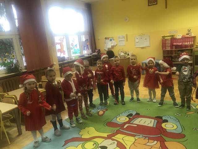 W poniedziałek 6 grudnia w naszym przedszkolu pojawił się długo oczekiwany gość. Dzieci cierpliwie czekały na Świętego Mikołaja. Na tę okazję wszyscy ubrani byli na czerwono. Kiedy w końcu Mikołaj zapukał do drzwi naszych sal powitaliśmy go wierszami, piosenkami i tańcami. Spotkanie z Mikołajem minęło w bardzo miłej atmosferze, a z dziecięcych twarzy nie schodziły uśmiechy. Wszyscy zostani obdarowani prezentami. Cieszymy się, że Święty Mikołaj o nas pamiętał i czekamy na jego wizytę w przyszłym roku!