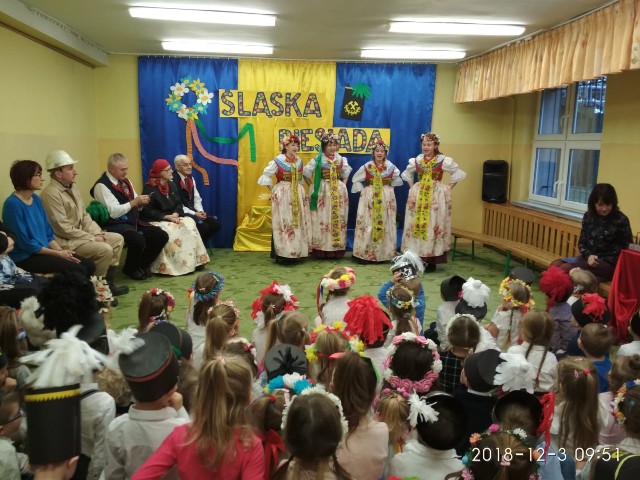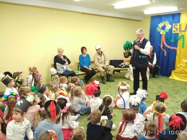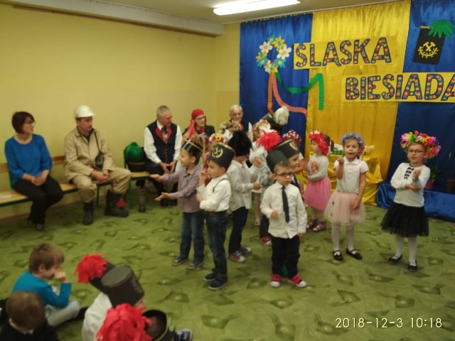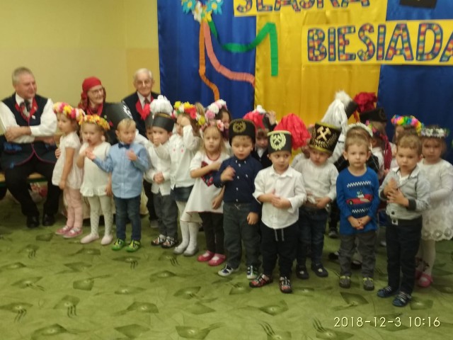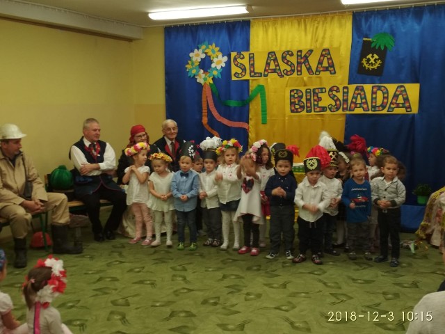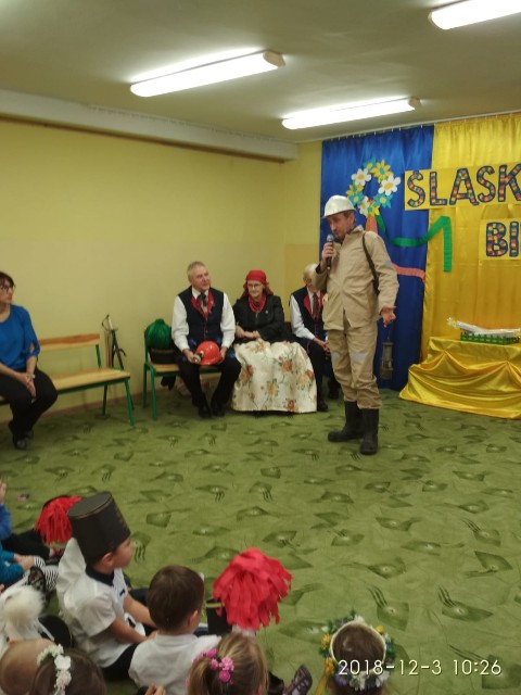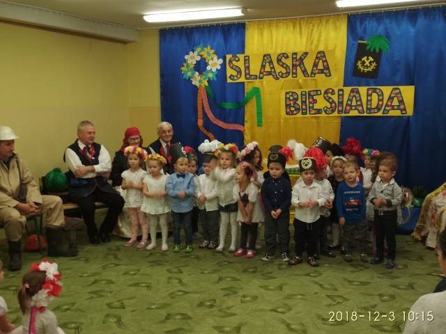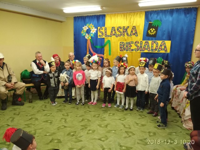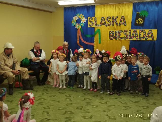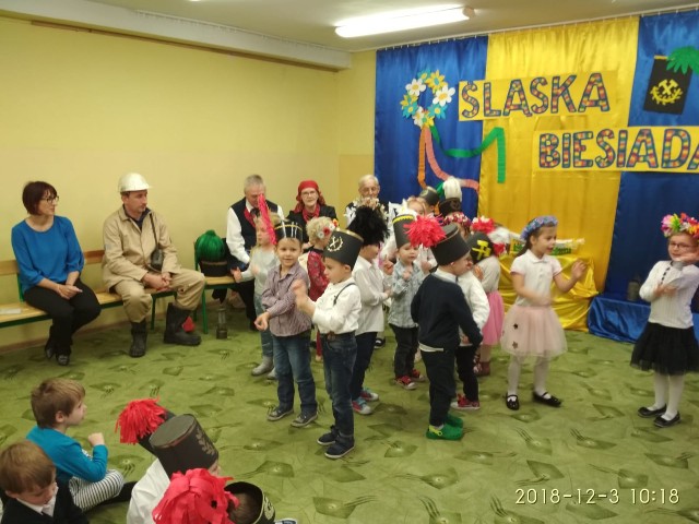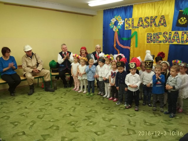 03 grudnia odbyła się w naszym przedszkolu Biesiada Śląska. Każda z grup przygotowała krótki występ. Na naszej uroczystości gościliśmy delegację z piekarskiego Koła Zawiązku Górnośląskiego - Panią Helenę Leśniowską, Pana Romana Kierę oraz Pana Lucjana Zając. Śląskie piosenki zaśpiewały nam uczennice z klasy szóstej pod kierunkiem Pani Joli. O pracy górnika opowiedział nam również Pan Marek Wieczorek.