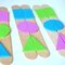 - łączenie przeciętych na pół figur geometrycznych w całość