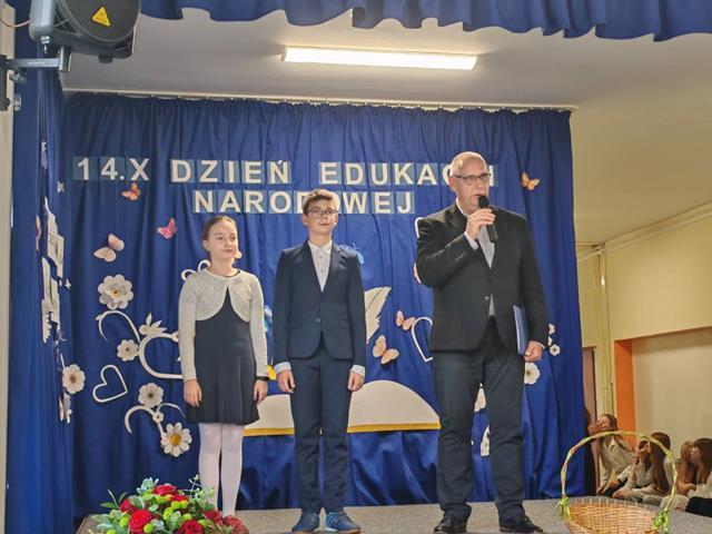 15 października uczciliśmy w szkole Dzień Edukacji Narodowej, obchodzony 14 października. Uczniowie mieli okazję wysłuchać krótkiego występu przygotowanego przez klasę 7b, a następnie uczestniczyli w rozdaniu Statuetek Oscara przyznanych w dwunastu kategoriach nauczycielom naszej szkoły. Głosowanie przeprowadzone zostało online i trwało od środy (08.10.) do poniedziałku (13.10.), każdy uczeń szkoły miał możliwość oddania swojego głosu. Specjalnym Oscarem za całokształt działalności został uhonorowany Pan Dyrektor Adam Świątek. Na zakończenie uroczystości nastąpiło tradycyjne już wręczenie nagród dyrektora dla pracowników szkoły. Dyrekcja, całe grono pedagogiczne oraz pracownicy administracji i obsługi dziękują za wszystkie życzenia i wyrazy uznania, to był naprawdę wyjątkowy dzień.