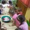 Najwięcej uciechy jednak dostarczył eksperyment: Wybuchający wulkan. Powstała piana jaką zaobserwowaliśmy to bąble napełnione dwutlenkiem węgla, który powstał z reakcji octu (kwasu) z sodą oczyszczaną (zasada). Zabawy z wodą bardzo podobały się wszystkim małym odkrywcom.