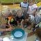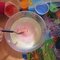 Gdy na mleku zbierze się już tęczowa tafla kolorów, namaczamy patyczki w płynie do mycia naczyń i delikatnie dotykamy powierzchni mleka. Jeśli eksperyment się uda barwniki pod wpływem płynu i zmiany napięcia powierzchniowego zaczną samoistnie wirować i mieszać się tworząc wspaniałe, barwne widowisko.