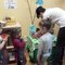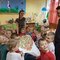 Grupa Misiów uczestniczyła w krótkim teatrzyku pt.: ,,Pan Ząbek i bolące zęby". Za własnoręcznie wykonaną sceną schowały się dwie aktorki- pani Madzia i pani Mirela. Odegrały scenki związane z higieną jamy ustnej, przypominając podopiecznym, jak ważne jest mycie zębów i zdrowie żywienie, wpływające na prawidłowy rozwój. Zdecydowanie najlepszą zabawą dzieci stało się samodzielne uczestnictwo w teatrzyku, założenie pacynki na dłoń i schowanie się po drugiej stronie sceny.