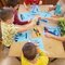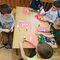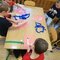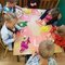 Nasze obserwacje odzwierciedlaliśmy w formach plastycznych – malowaliśmy farbami na dużych powierzchniach. Badaliśmy, jak powstają kolory, poprzez mieszanie 3 barw.