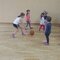 - Rzuca i łapie piłkę z niewielkiej odległości, toczy piłkę.
