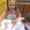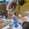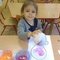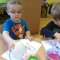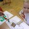 Na zajęciach grupa Słoneczek poznała podstawowe właściwości powietrza, które nas otacza. Maluchy wskazywały, jakie przedmioty codziennego użytku wykorzystują powietrze. Wspólnie zwróciliśmy uwagę na prawidłowe oddychanie i właściwą pracę płuc. Pracę plastyczną, z wykorzystaniem farb stworzyliśmy wyjątkowo nie za pomocą pędzla malarskiego. Narzędziem dającym wiele radości stał się balon - przedmiot, który wypełniany jest oczywiście powietrzem. Pomalowaliśmy balony, mieszając różne kolory farb i nakładając je nadmuchanym balonikiem.