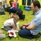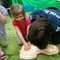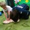 Za oknem wiosna, zatem należy przypomnieć najważniejsze zasady ruchu drogowego, a przede wszystkim, jak należy zachować się nad jeziorem lub innym kąpieliskiem wodnym. Pani policjant przedstawiła dzieciom, jak należy bezpiecznie poruszać się na drodze, przestrzegając podstawowych przepisów ruchu, szczególnie zwracając uwagę na przejścia dla pieszych i jazdę na rowerze. Ratownik WOPR-u przypomniał, jak właściwie zachowywać się nad jeziorem, a także gdzie możemy zażywać kąpieli wodnych. Po krótkiej prelekcji przyszedł czas na praktykę. Na maskotce i fantomie dzieci miały okazję przeprowadzić masaż serca, który może uratować ludzkie życie.